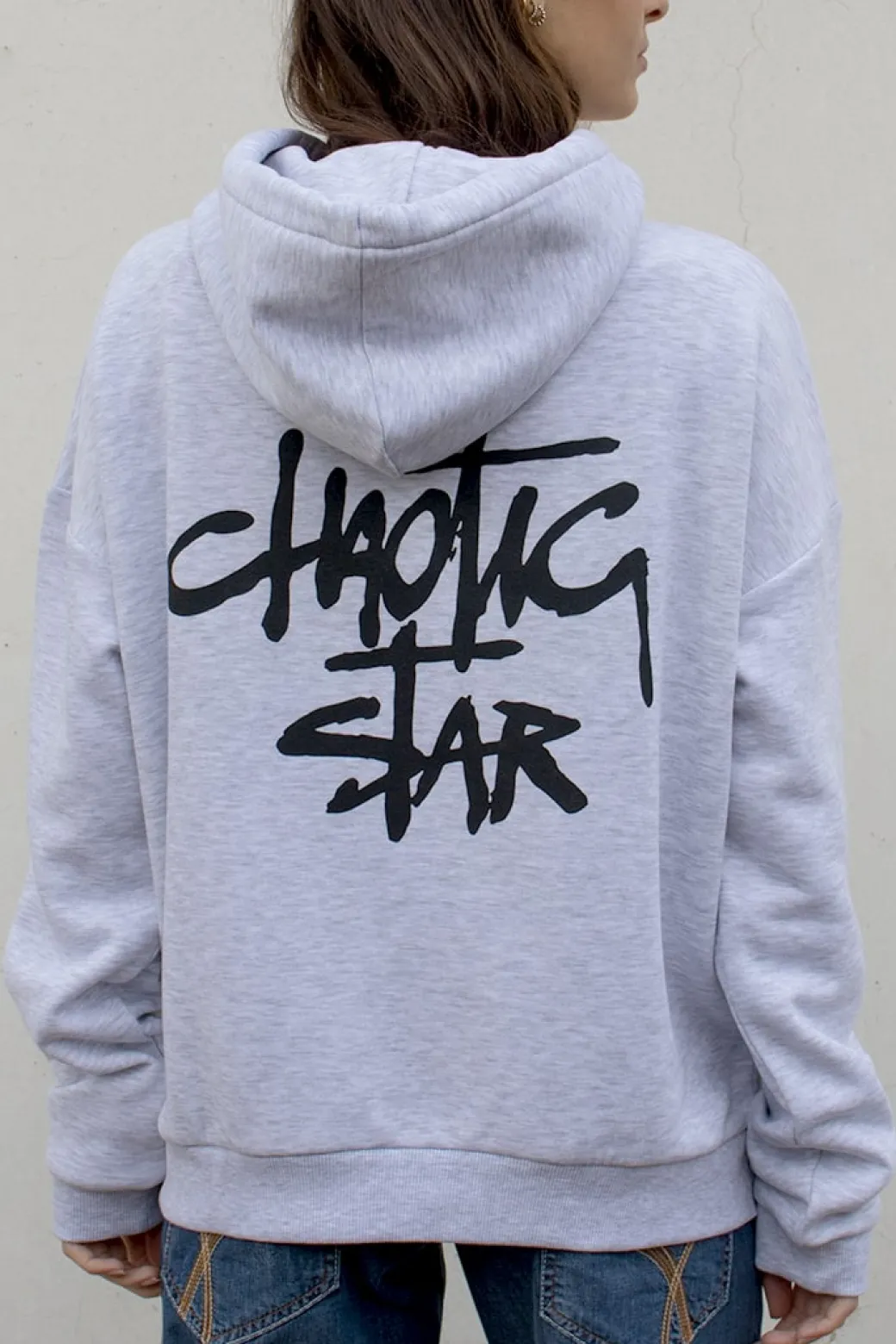 Felpa con stampa Chaotic star, con cappuccio, tasche frontali, maniche lunghe, lunghezza lunga, vestibilità comoda. Spedizione Express e Reso Facile