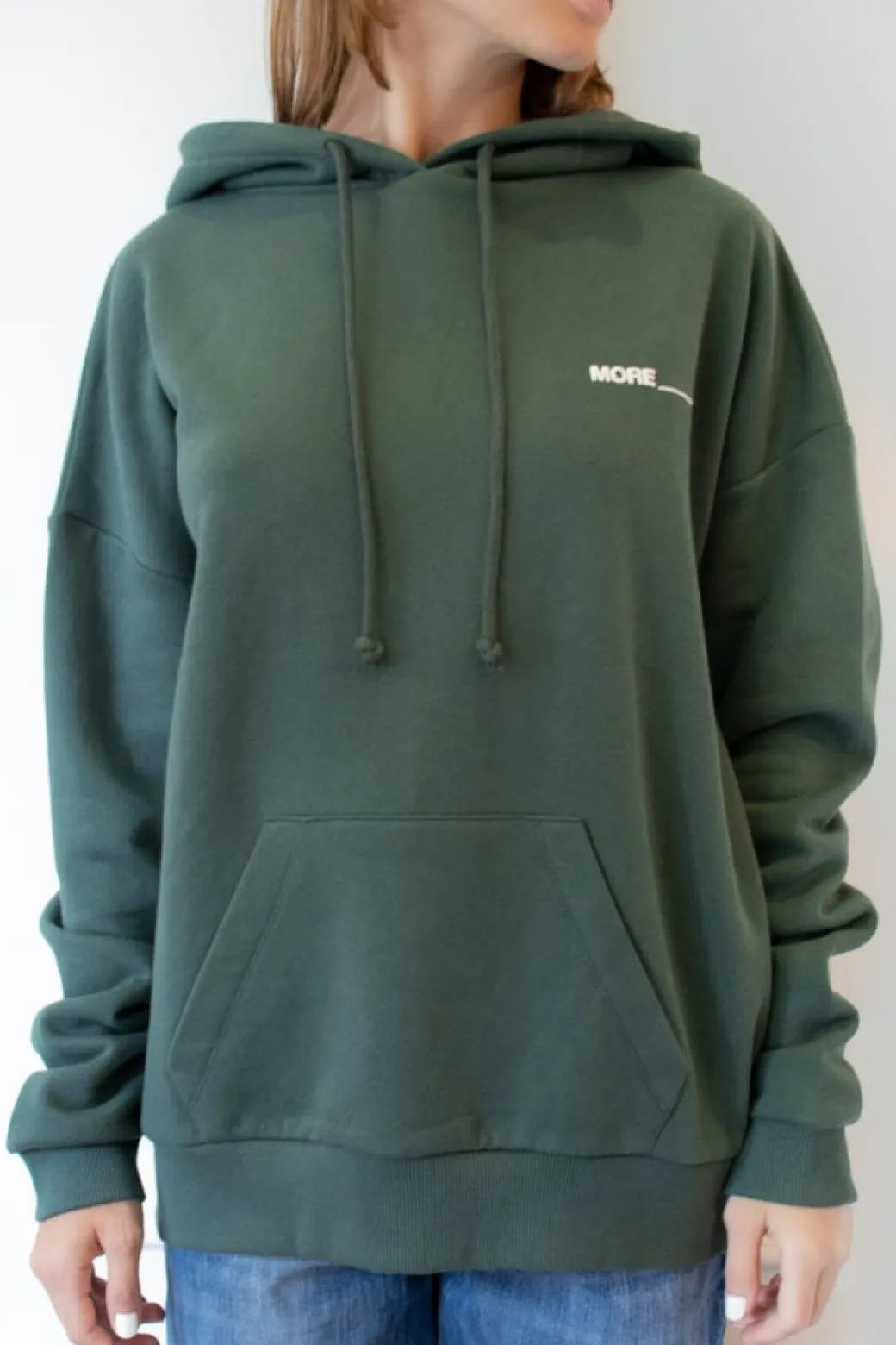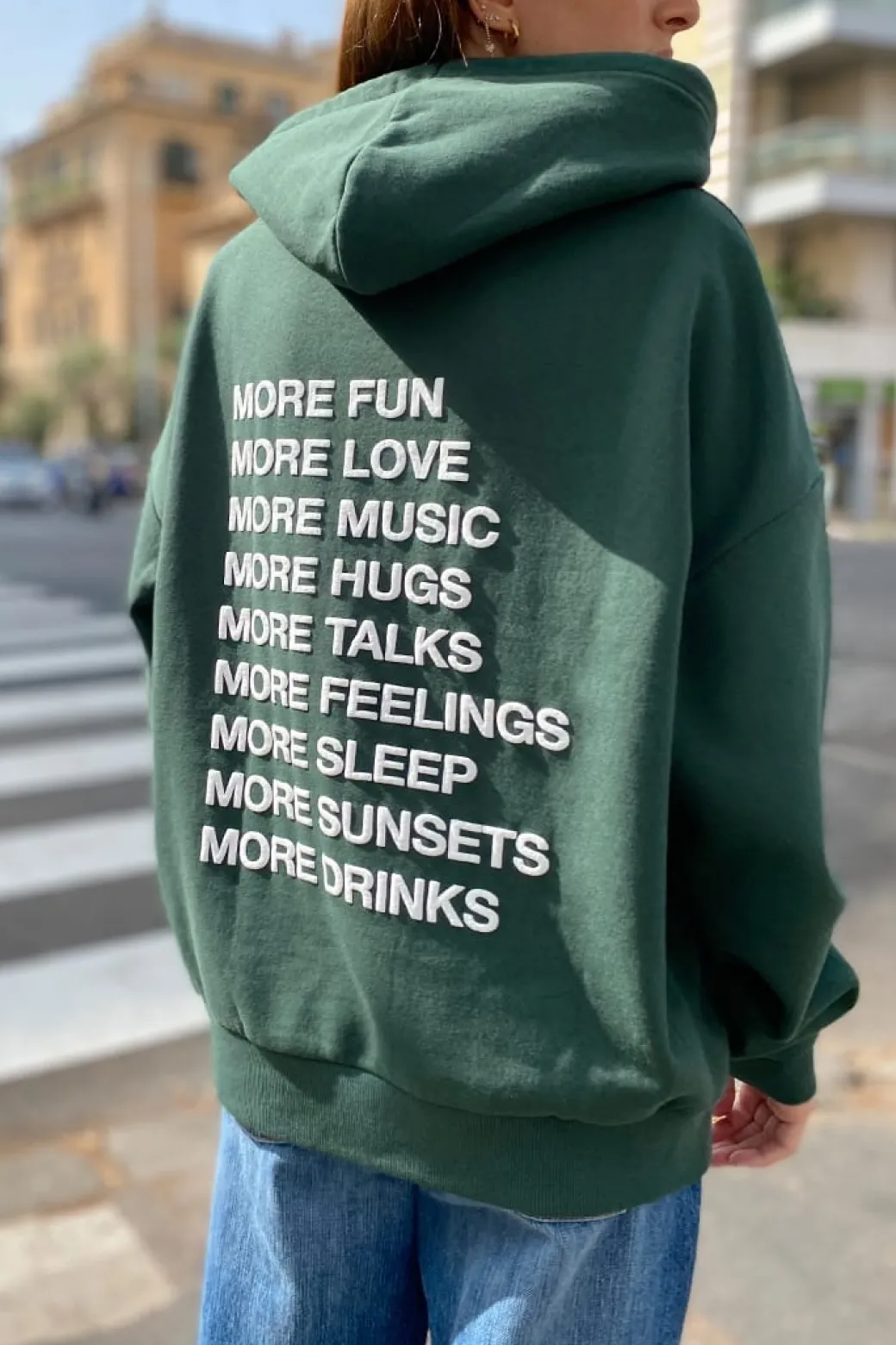 Felpa con stampa More, con cappuccio, tasche frontali, maniche lunghe, lunghezza lunga, vestibilità comoda. Spedizione Express e Reso Facile