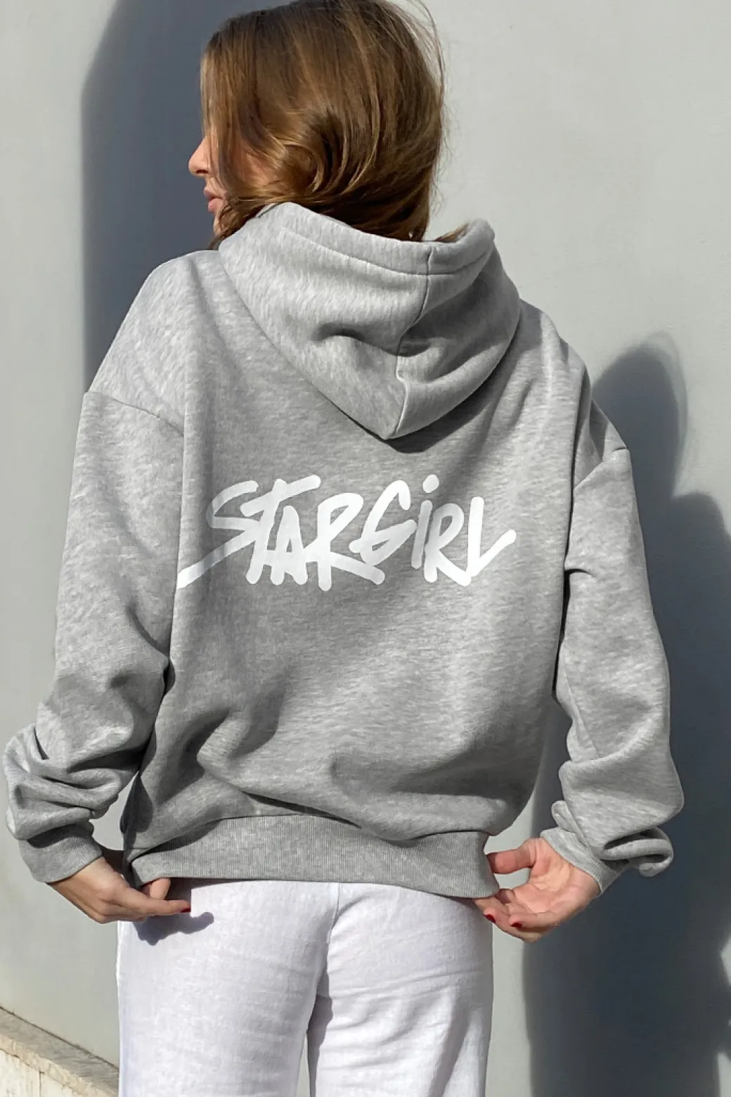 Felpa con stampa Stargirl, con cappuccio, tasche frontali, maniche lunghe, lunghezza lunga, vestibilità comoda. Spedizione Express e Reso Facile