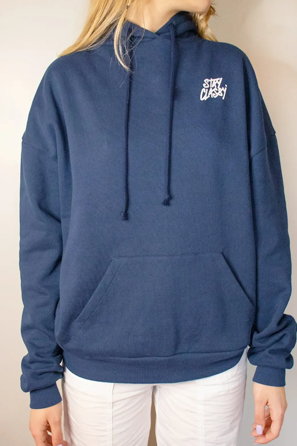 Felpa con stampa Stay classy, con cappuccio, tasche frontali, maniche lunghe, lunghezza lunga, vestibilità comoda. Spedizione Express e Reso Facile