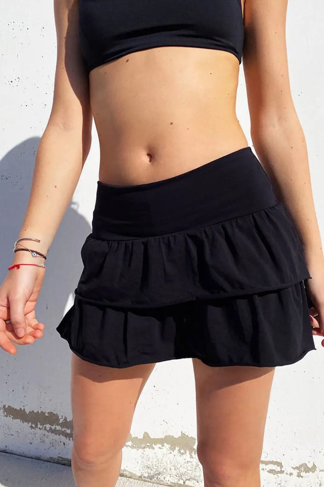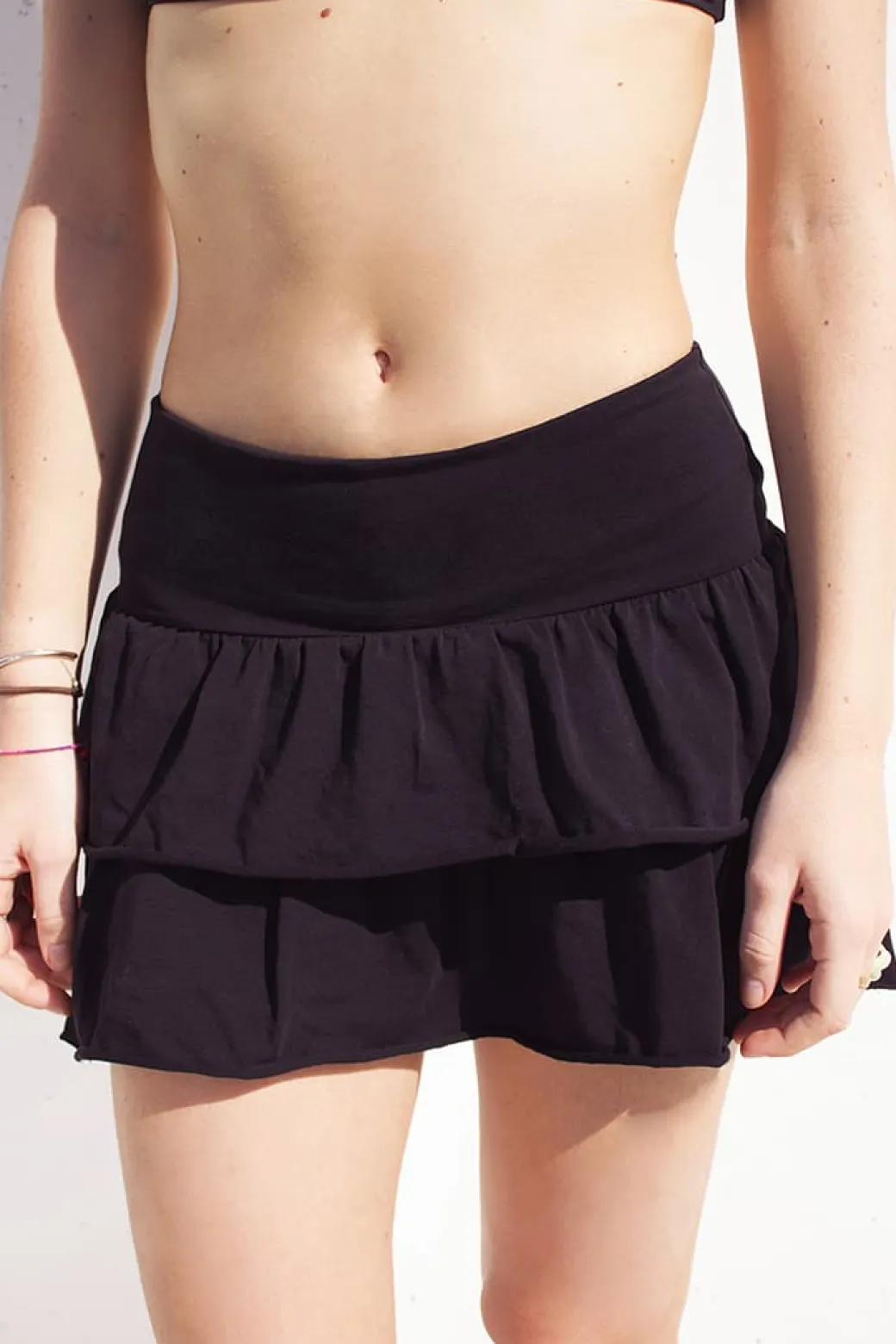 Gonna a balze, tessuto elasticizzato, lunghezza corta, vestibilità comoda. Spedizione Express e Reso Facile