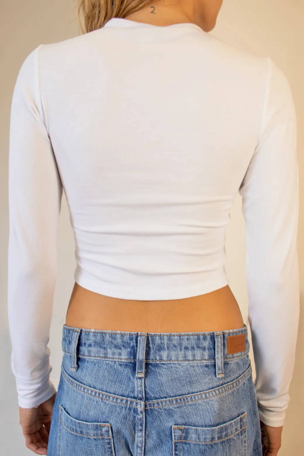 T-shirt girocollo, maniche lunghe, lunghezza crop, vestibilità aderente. Spedizione Express e Reso Facile