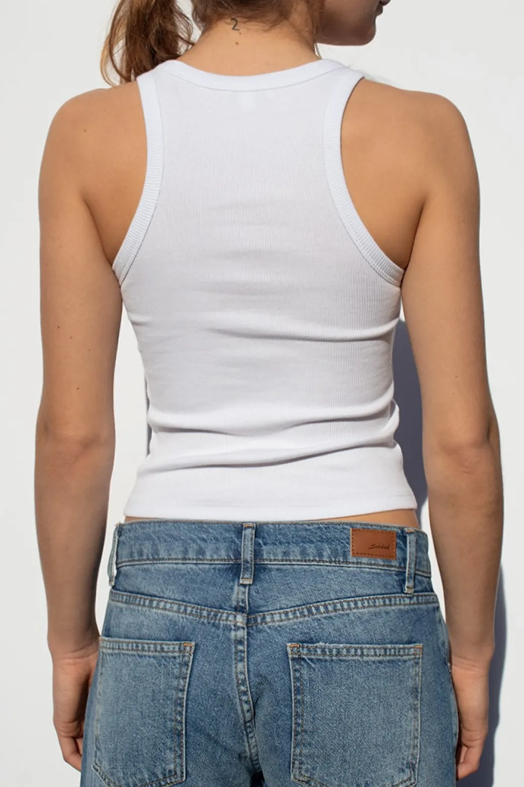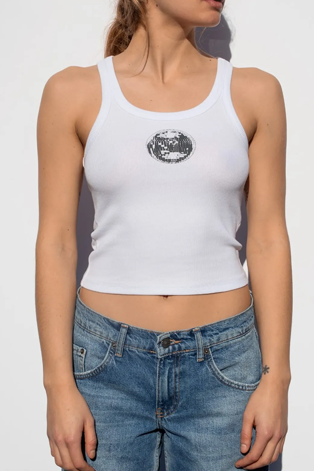 Tank top con stampa discoball, girocollo, smanicato, lunghezza corta, vestibilità slim. Spedizione Express e Reso Facile
