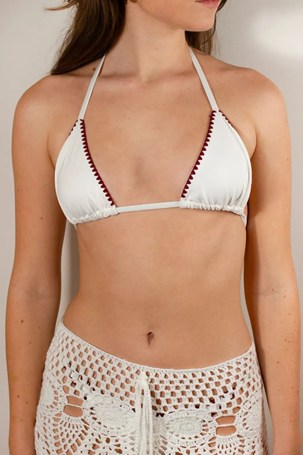 Top bikini con coppe triangolari, con impunture a costrasto, imbottitura removibile, interno foderato, bretelle, allacciatura sul retro. Spedizione Express e Reso Facile