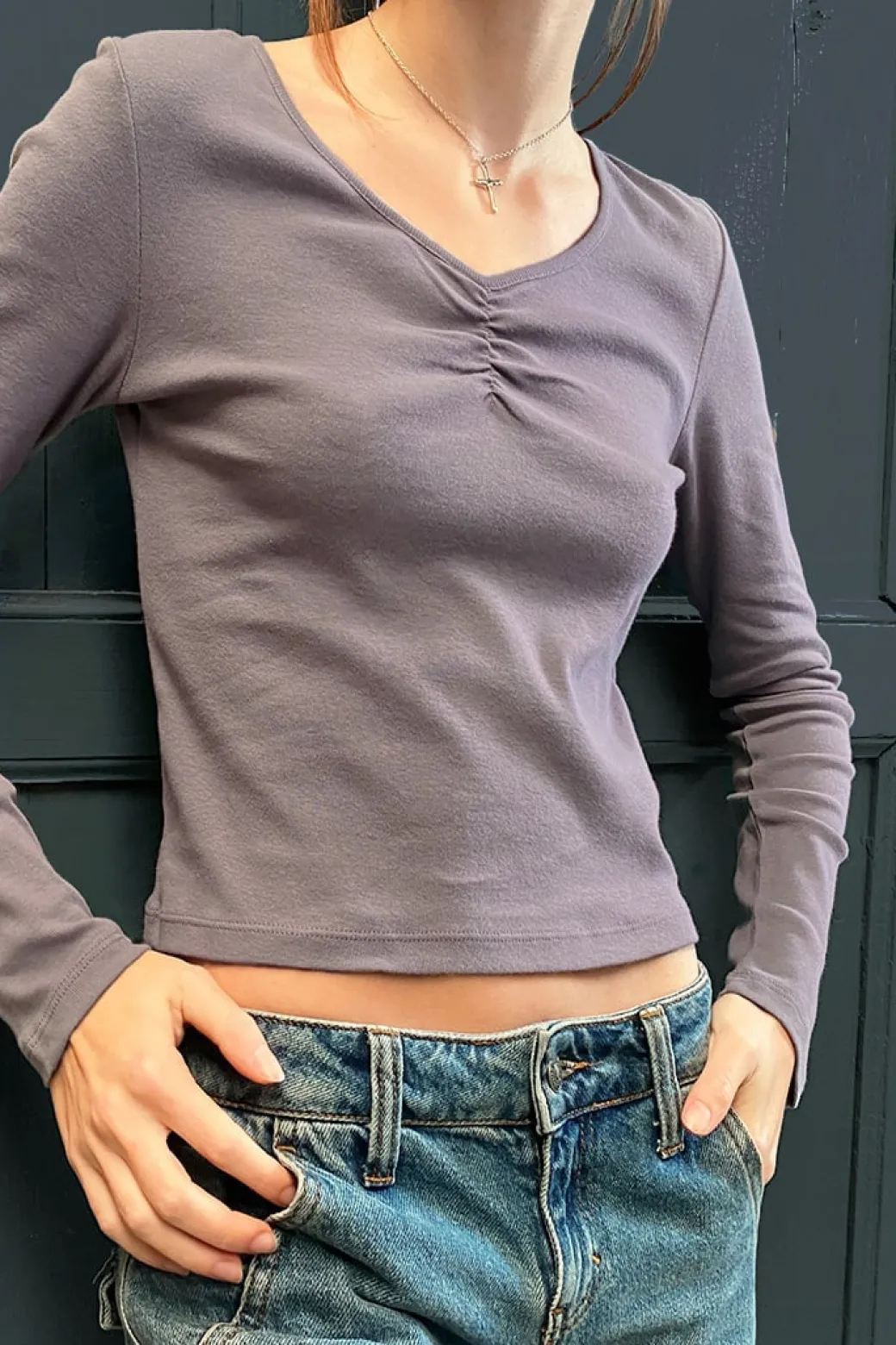 T-shirt con arricciatura sul davanti, scollo a V, maniche lunghe, lunghezza regolare, vestibilità slim. Spedizione Express e Reso Facile