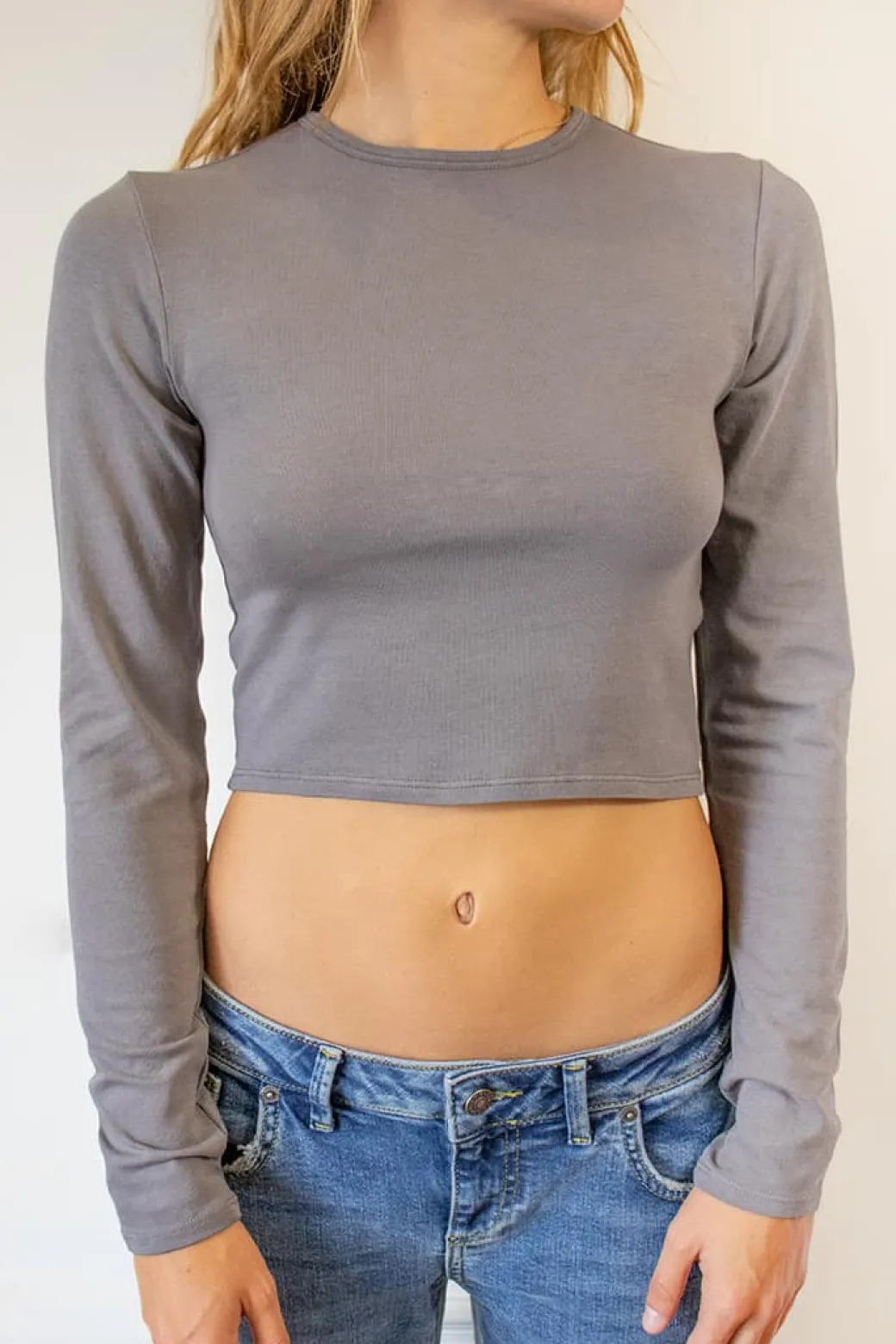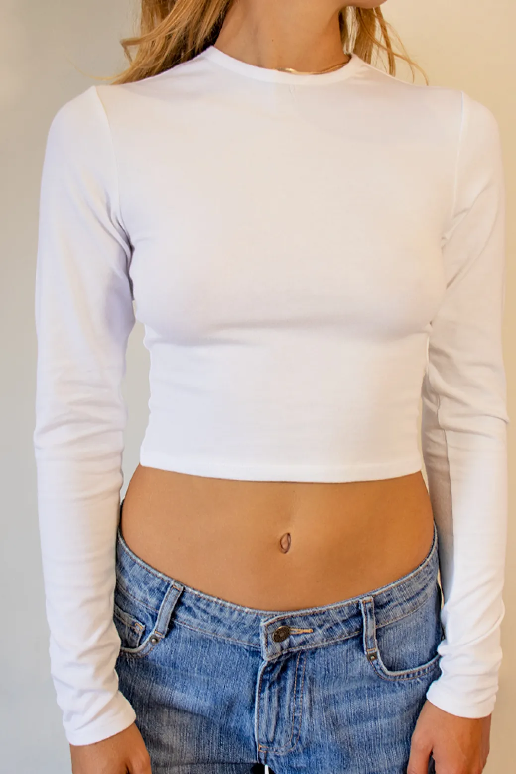 T-shirt girocollo, maniche lunghe, lunghezza crop, vestibilità aderente. Spedizione Express e Reso Facile