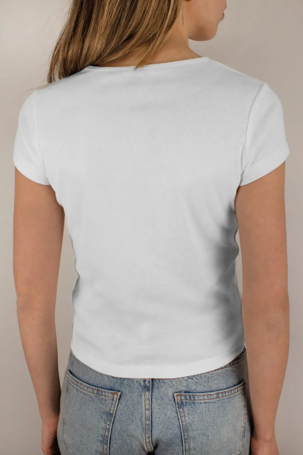 T-shirt con stampa Fiore, girocollo, maniche corte, lunghezza regolare, vestibilità comoda. Spedizione Express e Reso Facile